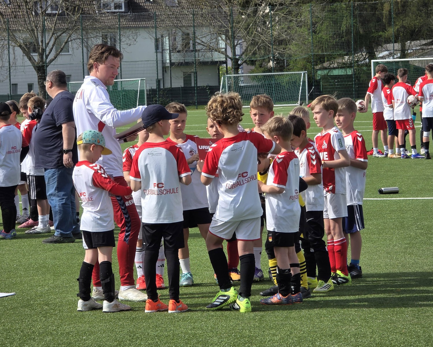 In der zweiten Woche der Osterferien durften wir ein ganz besonderes Highlight auf unserer Anlage begrüßen: Das Fußballcamp des 1. FC Köln war bei uns zu Gast! Von Dienstag bis Donnerstag hatten 55 fußballbegeisterte Kinder im Alter von 6 bis 14 Jahren die Möglichkeit, unter professionellen Bedingungen zu trainieren, neue Fähigkeiten zu erlernen und vor allem jede Menge Spaß am Fußball zu erleben. Bei strahlendem Sonnenschein herrschte an allen drei Tagen beste Stimmung auf dem Platz. Die Kids waren mit vollem Einsatz dabei und konnten viele tolle Eindrücke und Erlebnisse mit nach Hause nehmen. Ein besonderes Highlight zum Abschluss: Jedes Kind erhielt eine Urkunde als Erinnerung an die Teilnahme am Camp – ein schöner Abschluss für drei unvergessliche Tage.