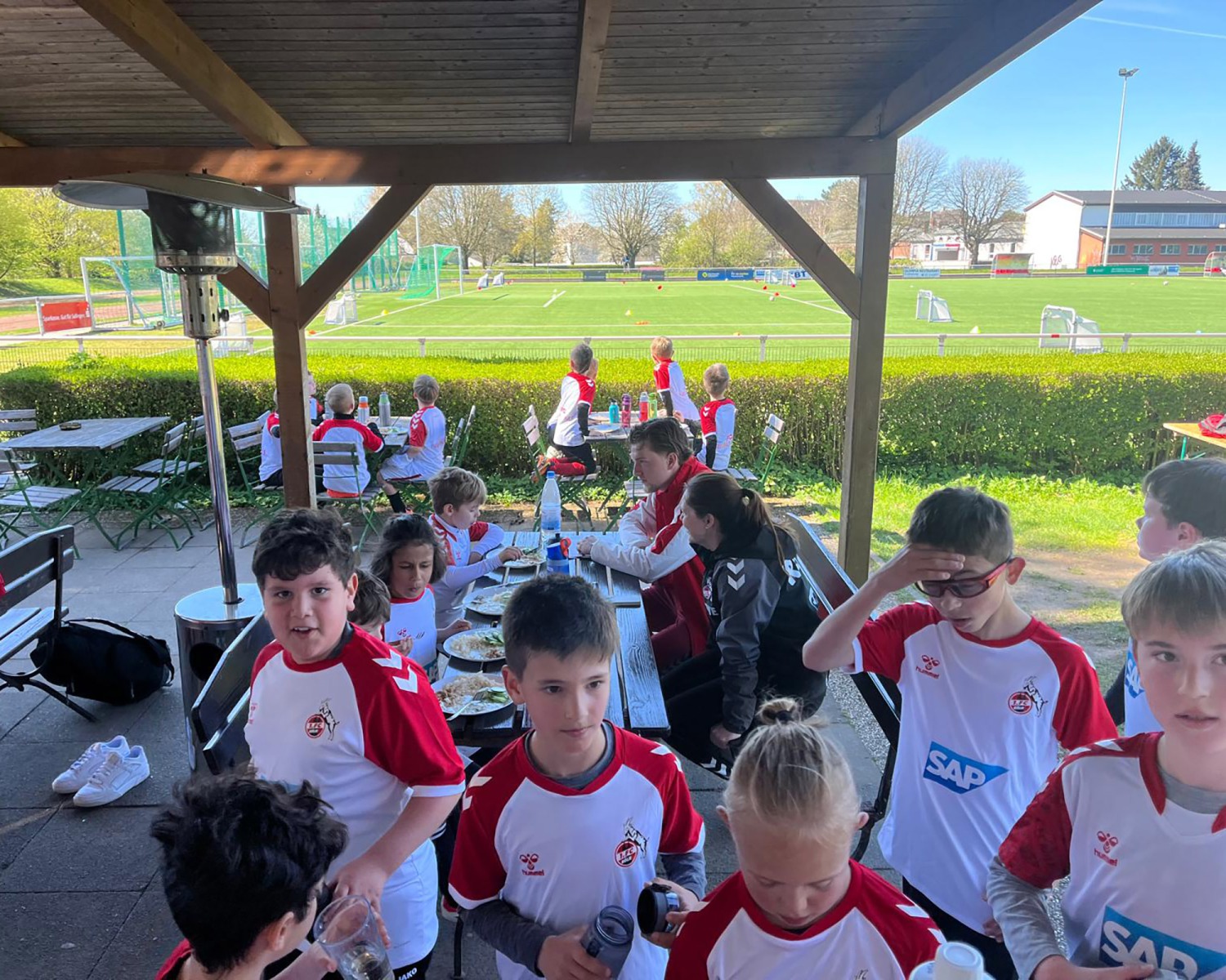 In der zweiten Woche der Osterferien durften wir ein ganz besonderes Highlight auf unserer Anlage begrüßen: Das Fußballcamp des 1. FC Köln war bei uns zu Gast! Von Dienstag bis Donnerstag hatten 55 fußballbegeisterte Kinder im Alter von 6 bis 14 Jahren die Möglichkeit, unter professionellen Bedingungen zu trainieren, neue Fähigkeiten zu erlernen und vor allem jede Menge Spaß am Fußball zu erleben. Bei strahlendem Sonnenschein herrschte an allen drei Tagen beste Stimmung auf dem Platz. Die Kids waren mit vollem Einsatz dabei und konnten viele tolle Eindrücke und Erlebnisse mit nach Hause nehmen. Ein besonderes Highlight zum Abschluss: Jedes Kind erhielt eine Urkunde als Erinnerung an die Teilnahme am Camp – ein schöner Abschluss für drei unvergessliche Tage.