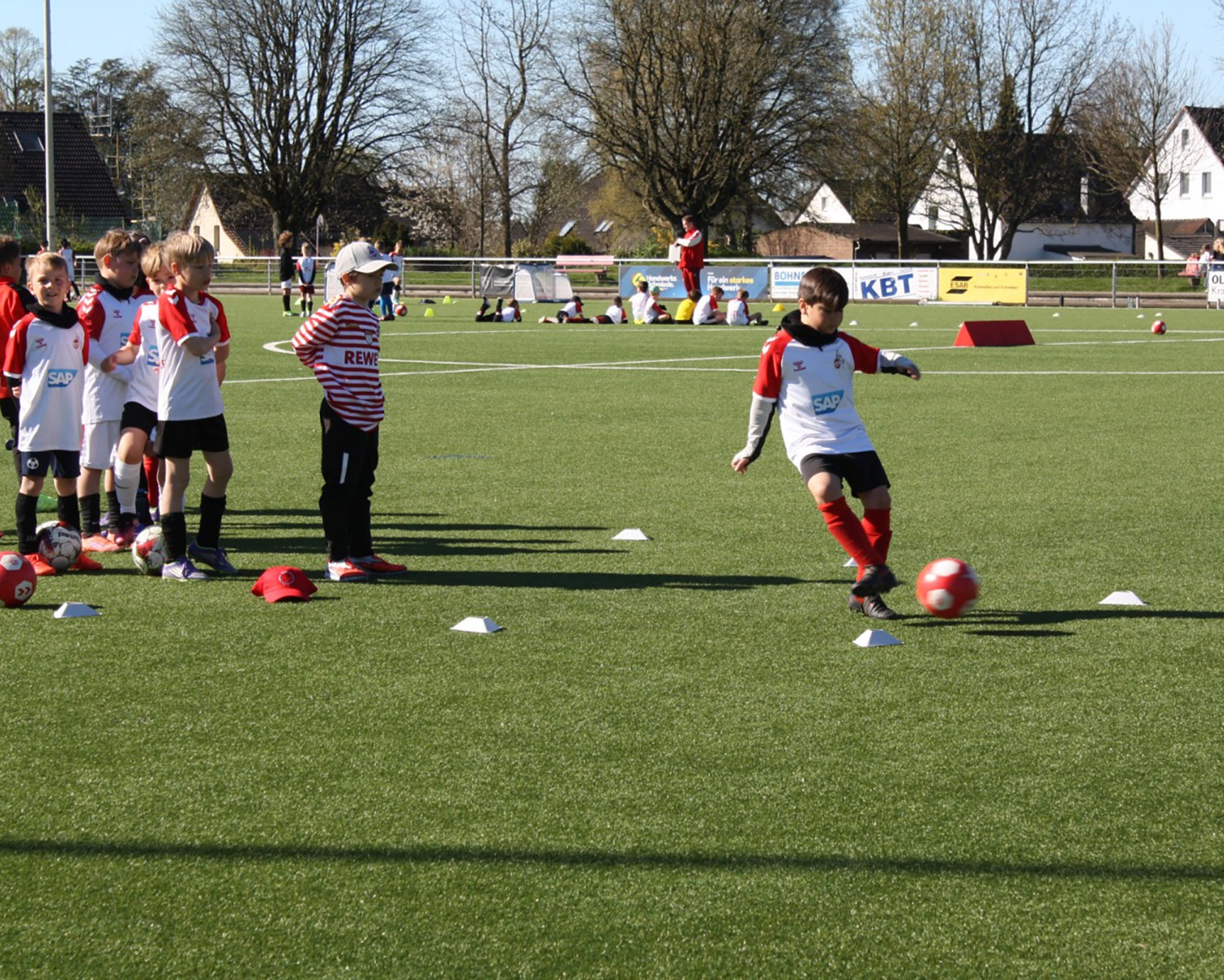 In der zweiten Woche der Osterferien durften wir ein ganz besonderes Highlight auf unserer Anlage begrüßen: Das Fußballcamp des 1. FC Köln war bei uns zu Gast! Von Dienstag bis Donnerstag hatten 55 fußballbegeisterte Kinder im Alter von 6 bis 14 Jahren die Möglichkeit, unter professionellen Bedingungen zu trainieren, neue Fähigkeiten zu erlernen und vor allem jede Menge Spaß am Fußball zu erleben. Bei strahlendem Sonnenschein herrschte an allen drei Tagen beste Stimmung auf dem Platz. Die Kids waren mit vollem Einsatz dabei und konnten viele tolle Eindrücke und Erlebnisse mit nach Hause nehmen. Ein besonderes Highlight zum Abschluss: Jedes Kind erhielt eine Urkunde als Erinnerung an die Teilnahme am Camp – ein schöner Abschluss für drei unvergessliche Tage.