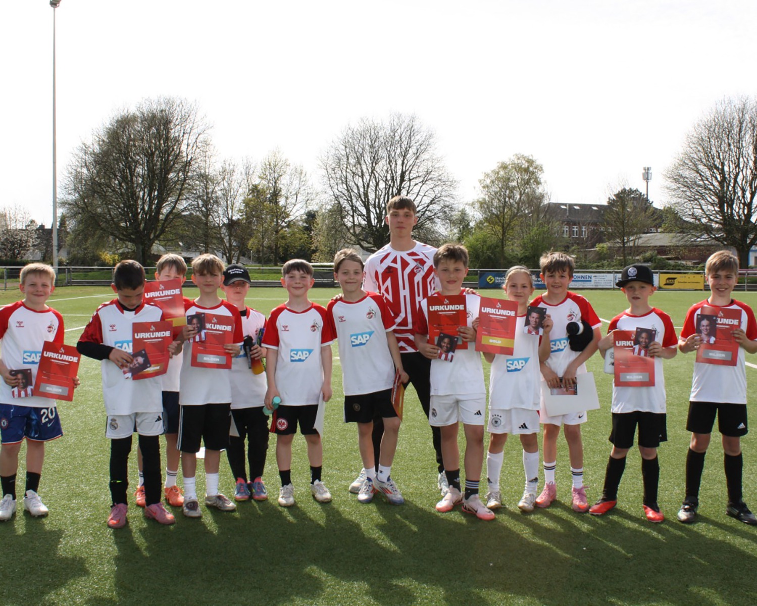 In der zweiten Woche der Osterferien durften wir ein ganz besonderes Highlight auf unserer Anlage begrüßen: Das Fußballcamp des 1. FC Köln war bei uns zu Gast! Von Dienstag bis Donnerstag hatten 55 fußballbegeisterte Kinder im Alter von 6 bis 14 Jahren die Möglichkeit, unter professionellen Bedingungen zu trainieren, neue Fähigkeiten zu erlernen und vor allem jede Menge Spaß am Fußball zu erleben. Bei strahlendem Sonnenschein herrschte an allen drei Tagen beste Stimmung auf dem Platz. Die Kids waren mit vollem Einsatz dabei und konnten viele tolle Eindrücke und Erlebnisse mit nach Hause nehmen. Ein besonderes Highlight zum Abschluss: Jedes Kind erhielt eine Urkunde als Erinnerung an die Teilnahme am Camp – ein schöner Abschluss für drei unvergessliche Tage.